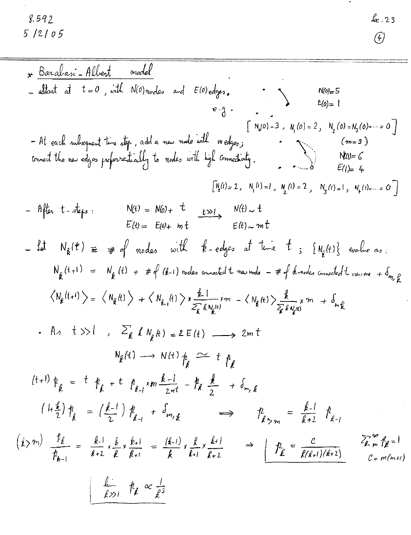 The Degree Distribution of the BA Model (Page 4 (GIF) of Lecture Notes)