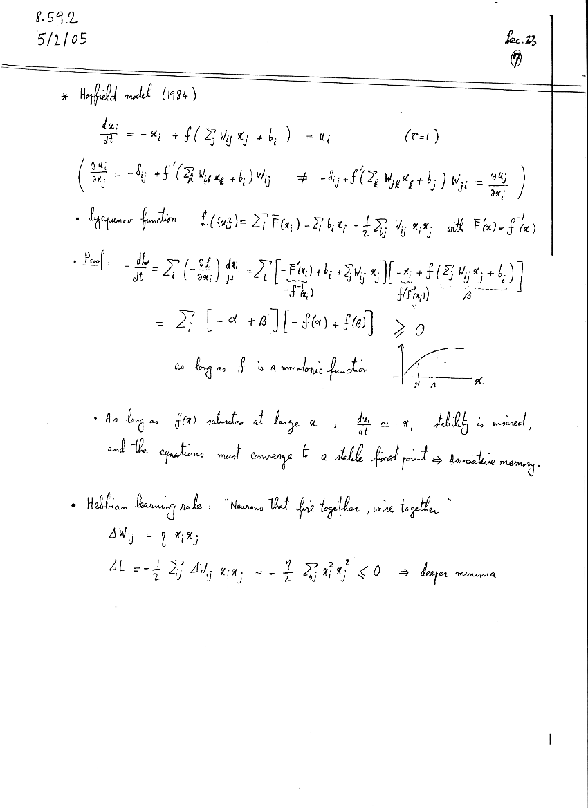 Hopfield, J. J. "Neurons with Graded Response Have Collective Computational Properties like Those of Two-State Neurons." Proceedings of the National Academy of Sciences of the United States of America 81, no. 10 (May 15, 1984): 3088-3092. (Part 1: Biological Sciences.) (Page 7 (GIF) of Lecture Notes)
