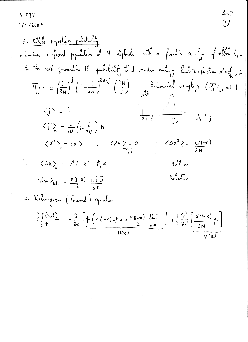 - Genetic Drift in Finite Populations; Loss of Heterozygosity (Absorbing States)