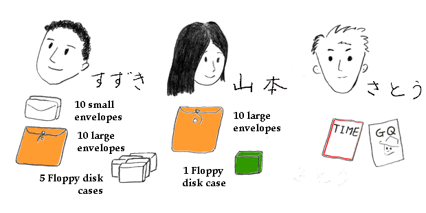 Suzuki, Yamamoto and Sato went shopping and purchased the following items.