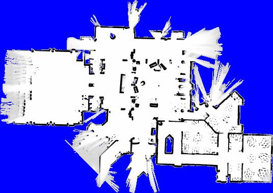 The Longwood at Oakmont nursing home. This map was constructed out of two separate data runs, where the data was collected using an old robot control software package called beeSoft. Two separate maps were created from the data, and then merged. The map resolution is 10cm.